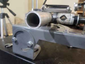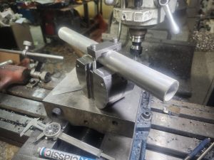 I was going to extend the base so they could position to make the longer shallow cuts, but when I checked the tube clamp it not only wasn’t at the same height as the arbor, but it didn’t hold the tube level. The arbor actually isn’t to terrible. I decided to make them a new clamp for the tube first. Its made so a wtap around clamp can be made for it, but the strap clamp allows you to turn the clamp/vise in either direction. I might not even have to extend the base. The wrap around clamp gets int he way and only allows you to turn the vise in one direction.